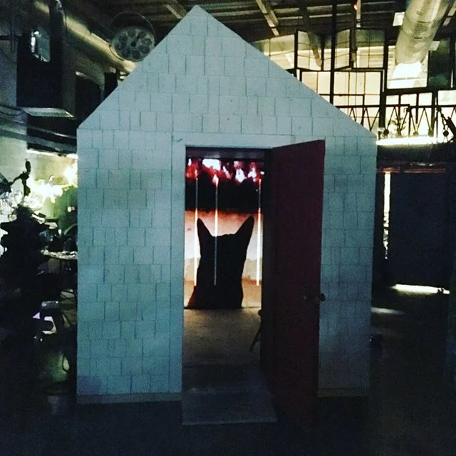 An exploded version of Cindy Kleine’s film Dead Girl Vampire Cats, this is a sensory immersion into a fantastical dream world that unfolds on 6 screens and 8 audio channels surrounding each viewer separately inside a constructed house. The viewer lies alone on a bed on the floor for 20 minutes to experience the multiple channels of film, video and sound unfolding around them. The piece employs film, video, audio, sculpture, architecture, and theatre, each incarnation in a unique space. So far it has been installed in a barn in MA for a week long run in 2017 and at The Wrecktory in Brooklyn for a two week run in 2018.